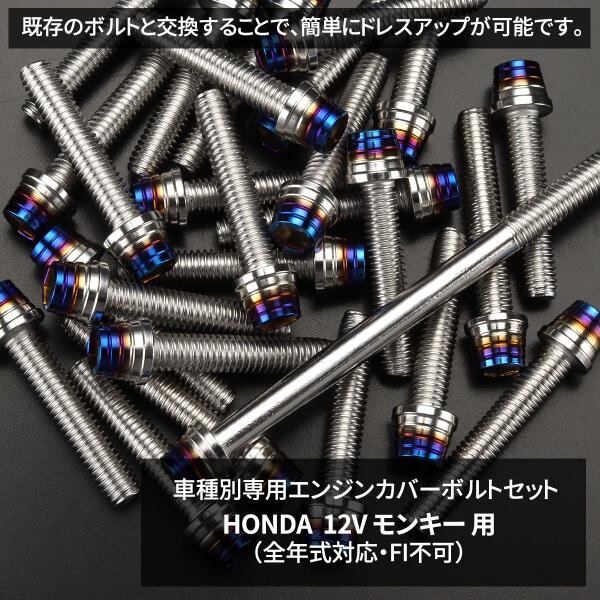 12Vモンキー エンジンカバー クランクケース ボルト 11本セット ステンレス製 ホンダ車用 シルバー×焼きチタンカラー TB6111