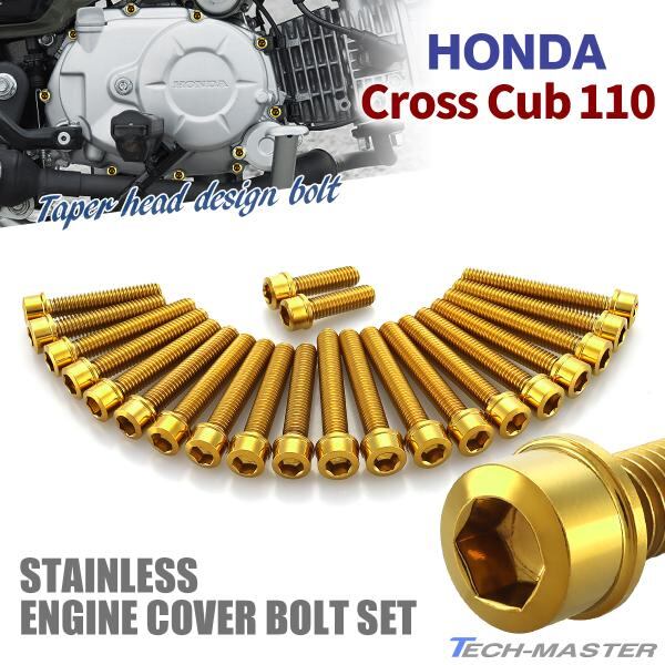 クロスカブ110 エンジンカバー クランクケース ボルト 22本セット ステンレス製 ホンダ車用 ゴールドカラー TB6342