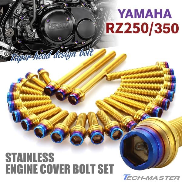 RZ250/350 エンジンカバー クランクケース ボルト 25本セット ステンレス製 ゴールド×焼きチタンカラー TB7182