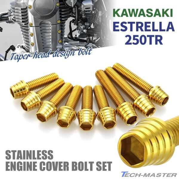 エストレヤ 250TR エンジンヘッドカバー シリンダーヘッドカバー ボルト 9本セット ステンレス製 ゴールドカラー TB8452