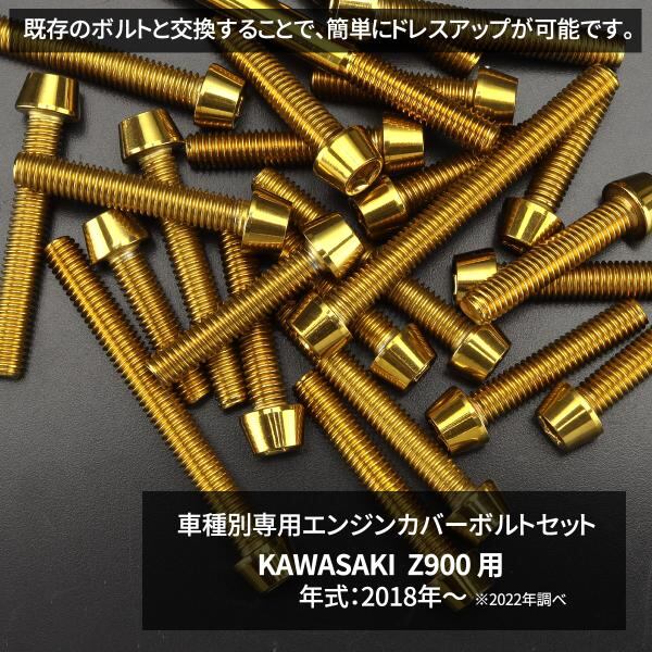 Z900 2018年〜 エンジンカバー クランクケース ボルト 27本セット ステンレス製 カワサキ車用 ゴールドカラー TB8609