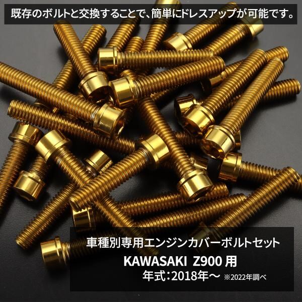 Z900 2018年〜 エンジンカバー クランクケース ボルト 27本セット ステンレス製 カワサキ車用 ゴールドカラー TB8612