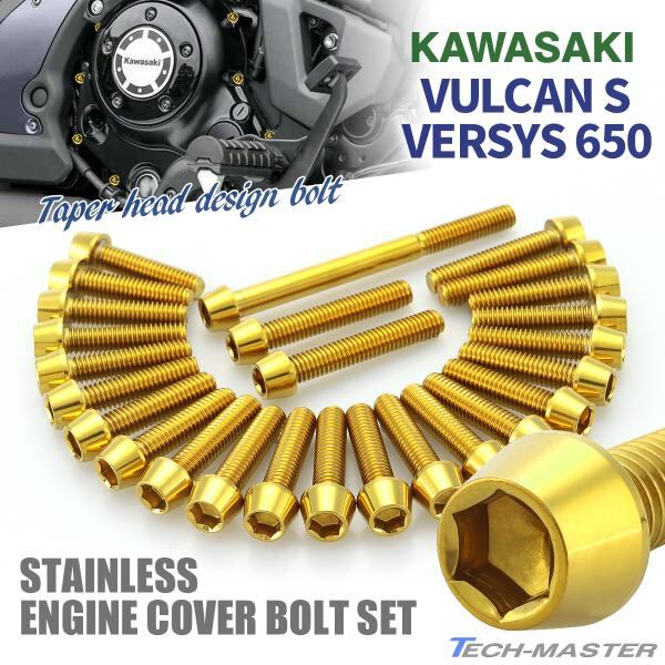 バルカンS ヴェルシス650 エンジンカバー クランクケース ボルト 26本セット ステンレス製 カワサキ車用 ゴールドカラー TB8634