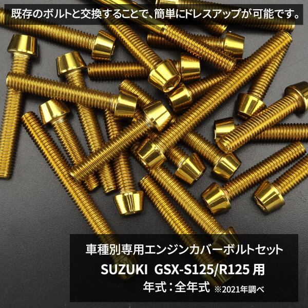 GSX-S125 GSX-R125 エンジンカバー クランクケース ボルト 28本セット ステンレス製 スズキ車用 ゴールドカラー TB9139