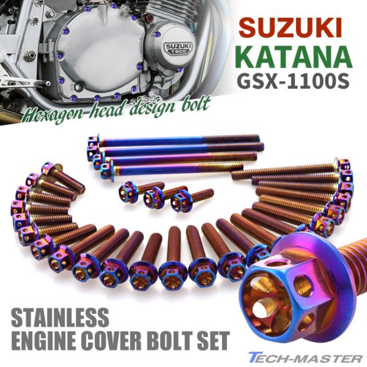 KATANA GSX1100S エンジンカバー クランクケース ボルト 30本セット ステンレス製 スズキ車用 焼きチタンカラー TB9281
