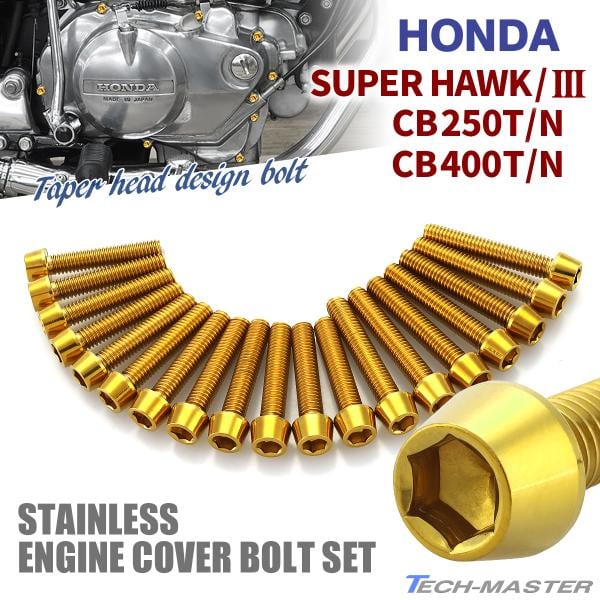 CB250T/N CB400T/N スーパーホーク/3 エンジンカバー クランクケース ボルト 19本セット ステンレス製 ホンダ車用 ゴールドカラー TB12014