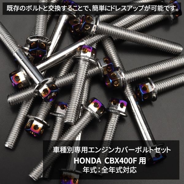 CBX400F エンジンカバー クランクケース ボルト 29本セット ステンレス製 ホンダ車用 シルバー×焼きチタンカラー TB12134