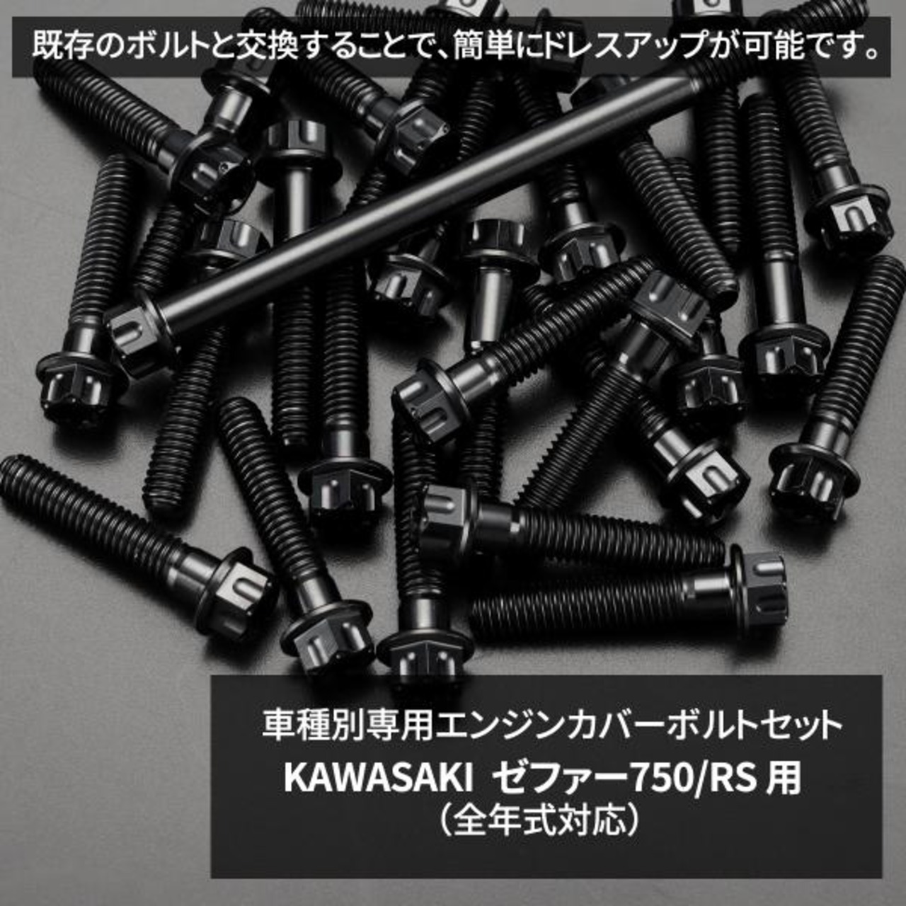 ゼファー750 RS エンジンカバー クランクケース ボルト 20本セット チタン製 カワサキ車用 ブラック JA8148