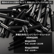 ニンジャ1000/SX Ninja エンジンカバー クランクケース ボルト 27本セット チタン製 カワサキ車用 ブラック JA8580