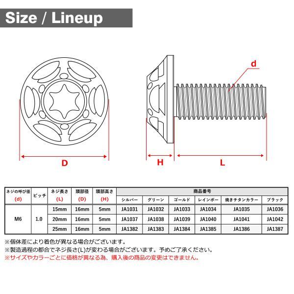 チタンボルト M6×20mm P1.0 トルクス穴 フランジ付き ボタンボルト 焼きチタンカラー 1個 JA1041