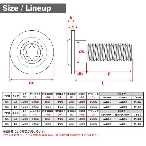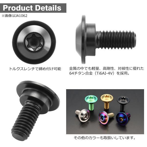 チタンボルト M6×15mm P1.0 円筒部直径10mm 段付きボルト トルクス穴 フランジ付き ブラック 1個 JA1062