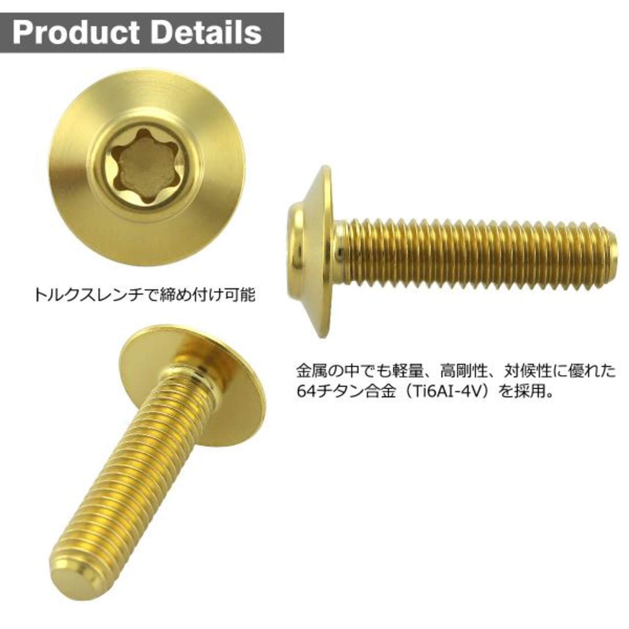 チタンボルト M5×20mm P0.8 トルクス穴 ワイドフランジ ボタンボルト ゴールド 1個 JA1100