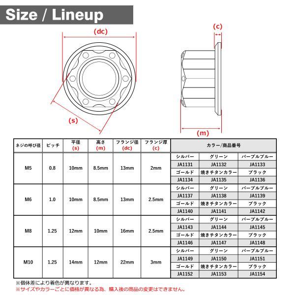 チタンナット M8 P1.25 六角ナット デザインナット フランジ付き セレート無し グリーン 1個 JA1144