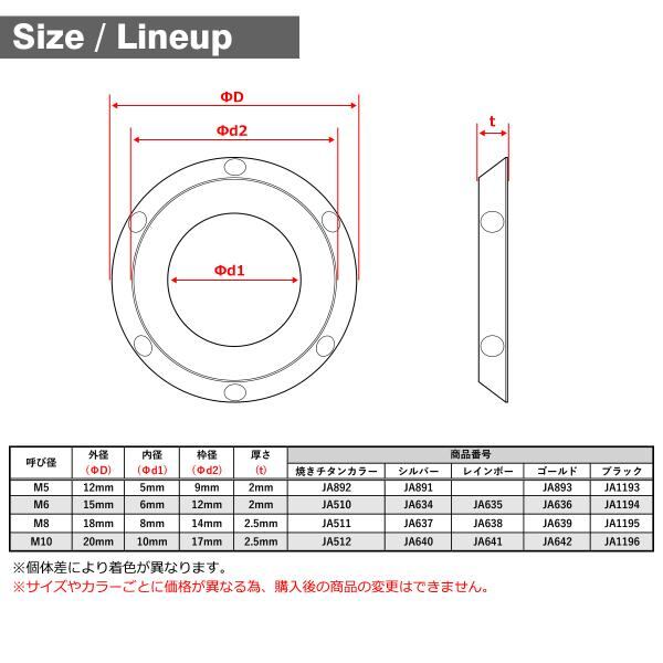 チタンワッシャー M8 外径18mm 枠径14mm フジツボ型ワッシャー ブラック 1個 JA1195