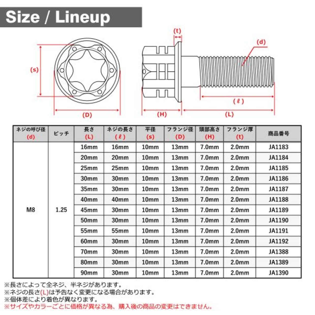 チタンボルト M8×70mm P1.25 ヘキサゴン トルクスヘッド キャップボルト ブラック 1個 JA1388