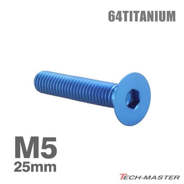 チタンボルト M5×25mm P0.8 皿ボルト 六角穴付き キャップボルト ブルー 1個 JA1515
