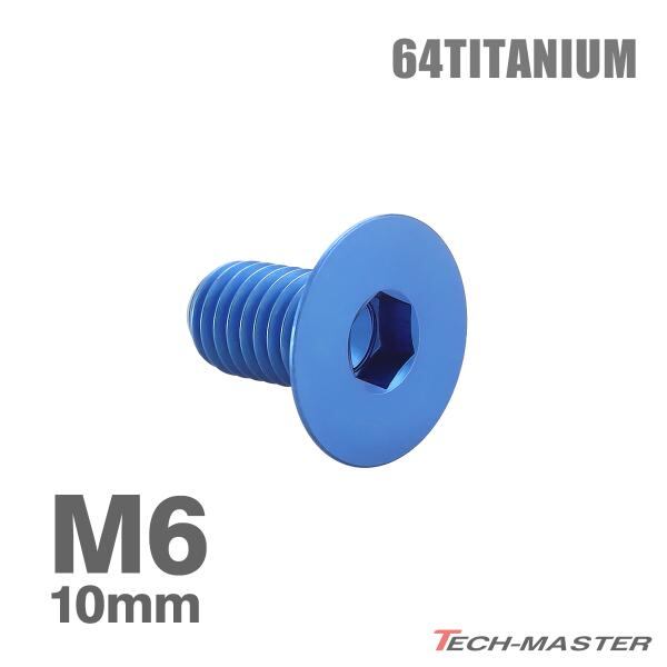 チタンボルト M6×10mm P1.0 皿ボルト 六角穴付き キャップボルト ブルー 1個 JA1536