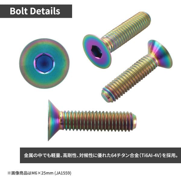 チタンボルト M6×10mm P1.0 皿ボルト 六角穴付き キャップボルト レインボーカラー 1個 JA1538