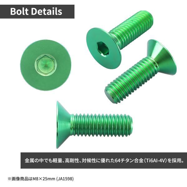 チタンボルト M8×25mm P1.25 皿ボルト 六角穴付き キャップボルト グリーン 1個 JA1598