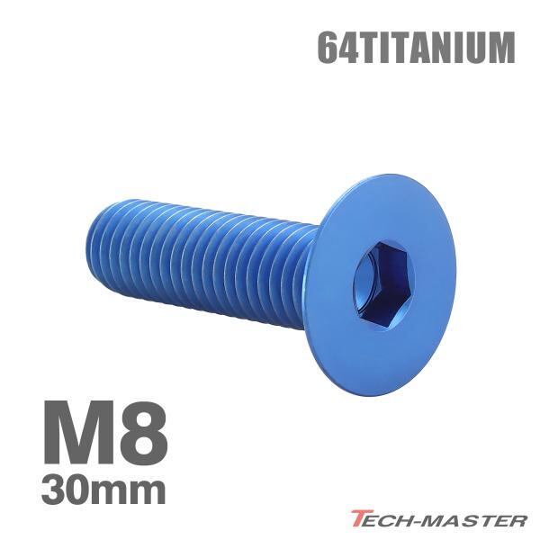 チタンボルト M8×30mm P1.25 皿ボルト 六角穴付き キャップボルト ブルー 1個 JA1606