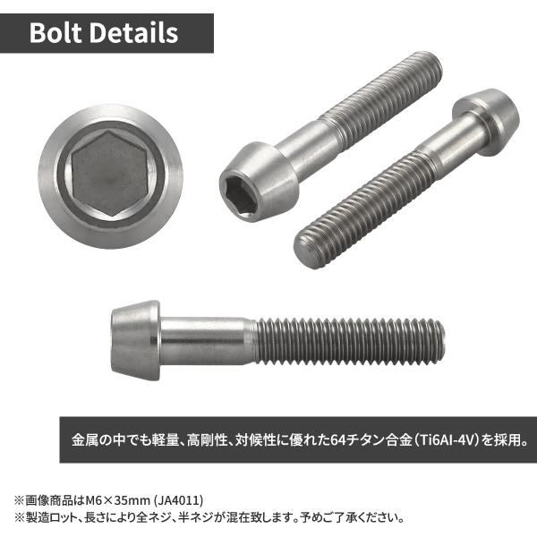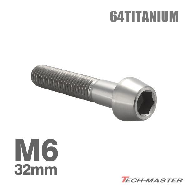 チタンボルト M6×32mm 1.0 テーパーヘッド 六角穴付き キャップボルト シルバーカラー 1個 JA4010