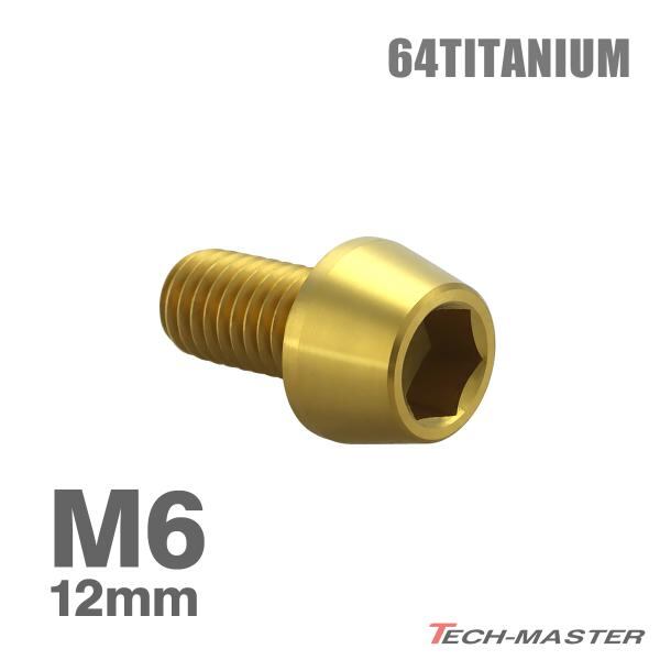 チタンボルト M6×12mm 1.0 テーパーヘッド 六角穴付き キャップボルト ゴールドカラー 1個 JA4060