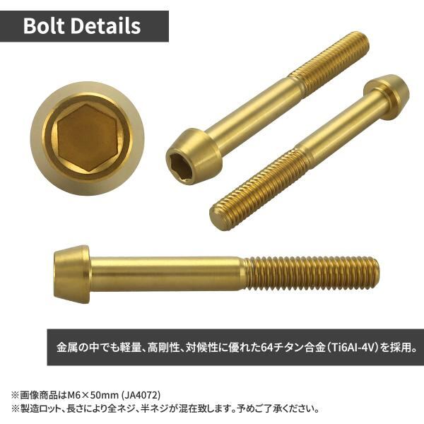チタンボルト M6×65mm 1.0 テーパーヘッド 六角穴付き キャップボルト ゴールドカラー 1個 JA4075