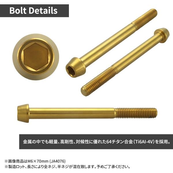 チタンボルト M6×115mm 1.0 テーパーヘッド 六角穴付き キャップボルト ゴールドカラー 1個 JA4085