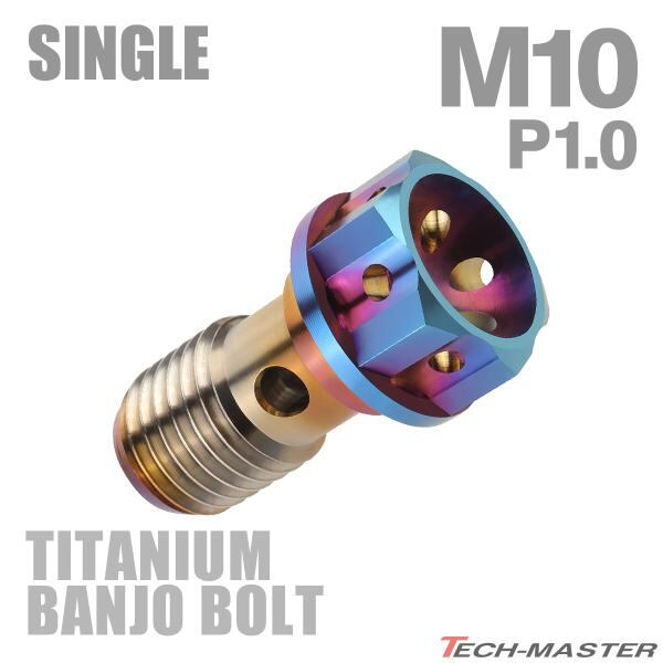 バンジョーボルト 64チタン M10 P1.0 シングル ブレーキライン 焼きチタンカラー ダークカラー 1個 JA015
