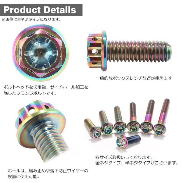 チタンボルト M6×45mm P1.0 ホールヘッド 六角ボルト フランジ付 焼きチタンカラー 1個 JA059