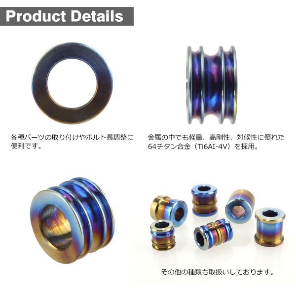 チタン 中空スペーサー ボルトカラー 外径10mm 内径6mm 長さ6mm 焼きチタンカラー 1個 JA089