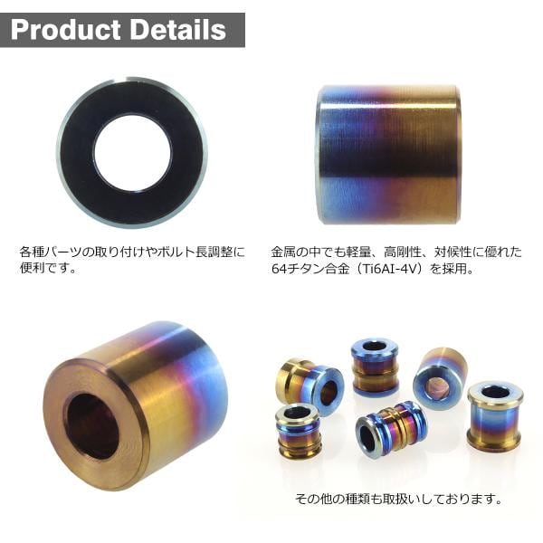 チタン 中空スペーサー ボルトカラー 外径12.5mm 内径6mm 長13mm 焼きチタンカラー 1個 JA090