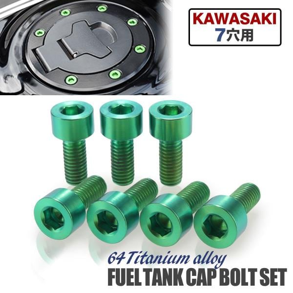 タンクキャップ チタンボルト バイク カワサキ 7穴用 グリーン 7本セット JA261