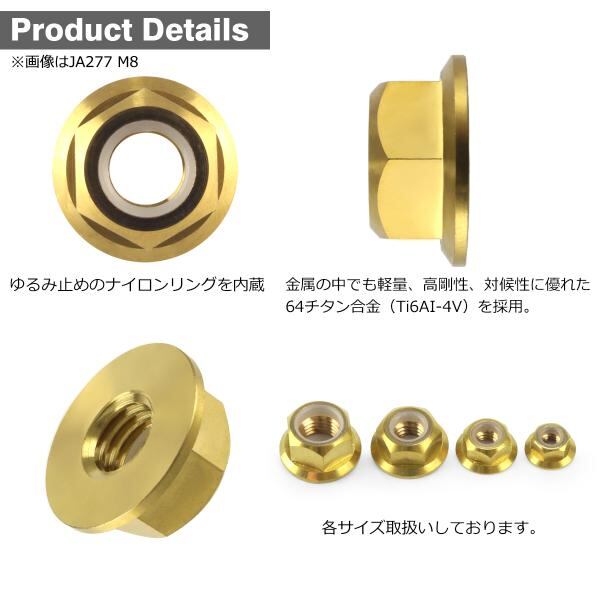 チタンナット M6 P1.0 六角ナット フランジ付き ナイロンナット ゆるみ止め内蔵 ゴールドカラー 1個 JA276