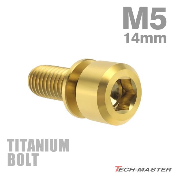 チタンボルト M5×14mm P0.8 ワッシャー組込 六角穴付き キャップボルト ゴールドカラー 金色 1個 JA307