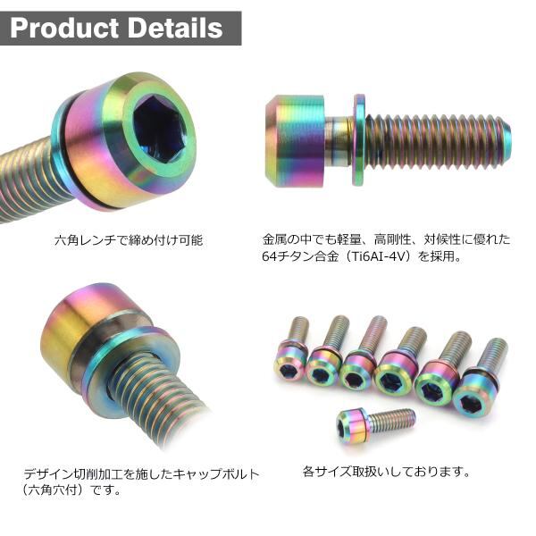 チタンボルト M5×18mm P0.8 ワッシャー組込 ステムボルト 六角穴付き 焼きチタンカラー 虹色 1個 JA314