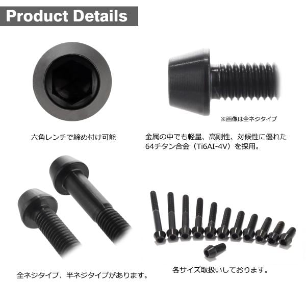64チタン テーパーヘッド キャップボルト(六角穴付きボルト)