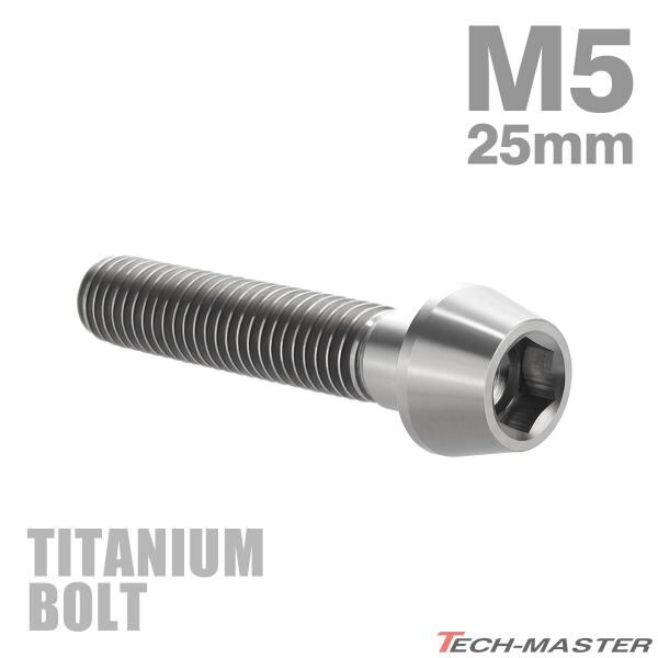 チタンボルト M5×25mm P0.8 テーパーヘッド 六角穴付き キャップボルト シルバーカラー 素地 1個 JA357