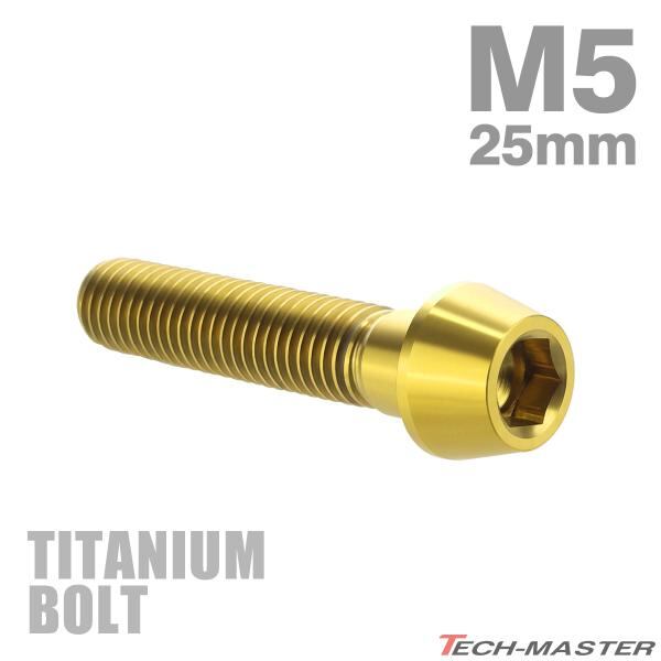 チタンボルト M5×25mm P0.8 テーパーヘッド 六角穴付き キャップボルト ゴールドカラー 金色 1個 JA359