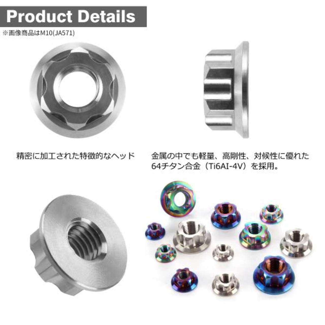 チタンナット M8 P1.25 六角ナット デザインナット フランジ付き セレート無し シルバーカラー 1個 JA568