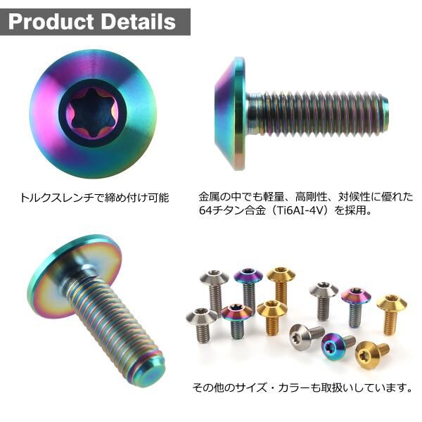 チタンボルト M5×15mm P0.8 テーパーヘッド トルクス穴 ボタンボルト 焼きチタンカラー 虹色 1個 JA623