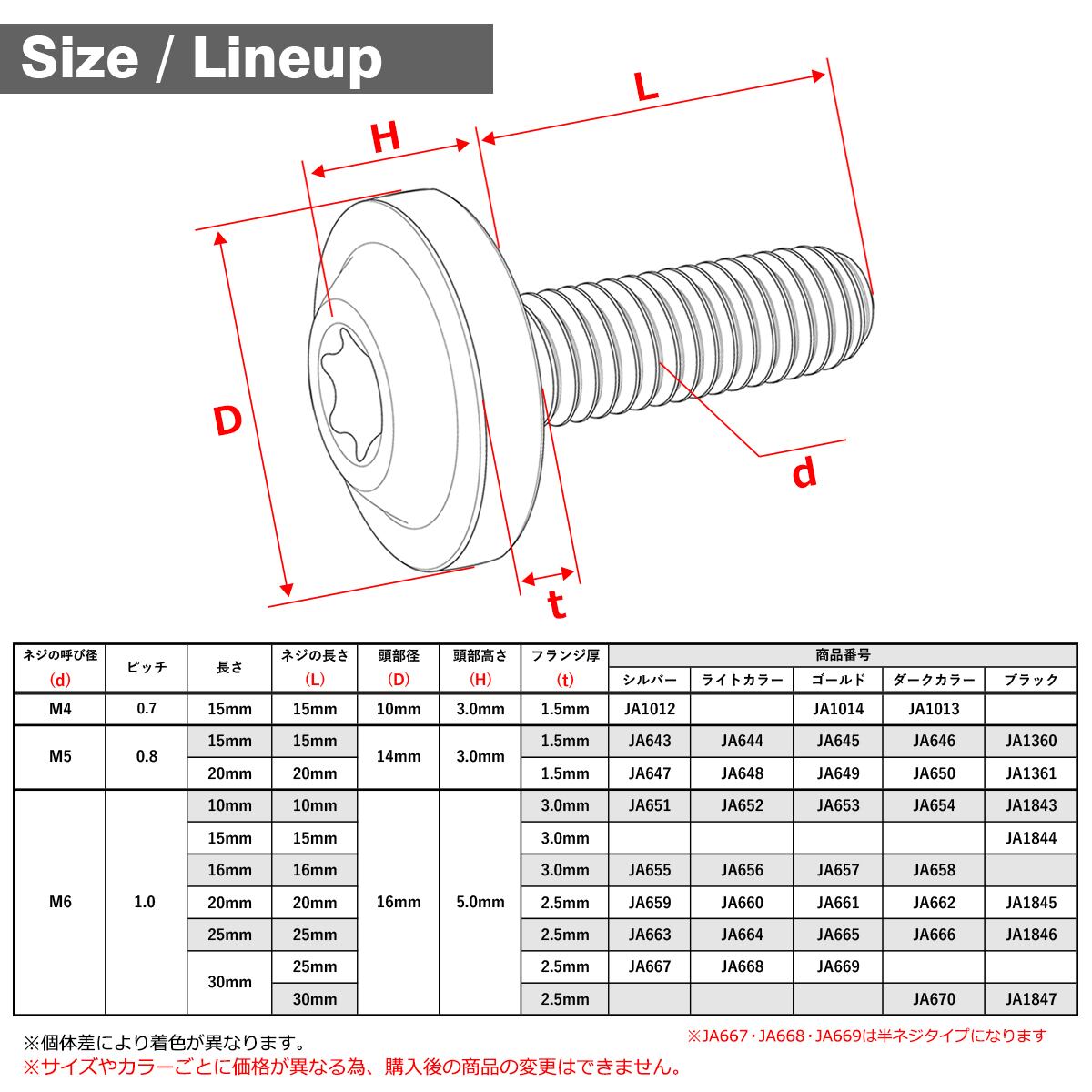 チタンボルト M5×15mm P0.8 トルクス穴 フランジ付き ボタンボルト 焼きチタンカラー ダークカラー 1個 JA646