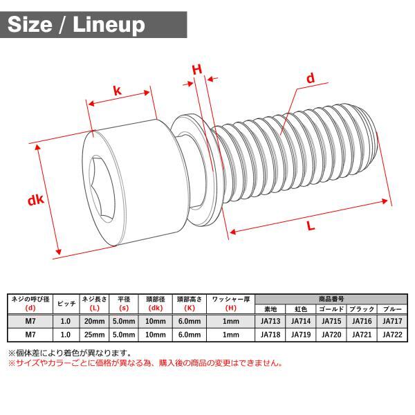 チタンボルト M7×20mm P1.0 ワッシャー組込 六角穴付き キャップボルト ブラック 1個 JA716