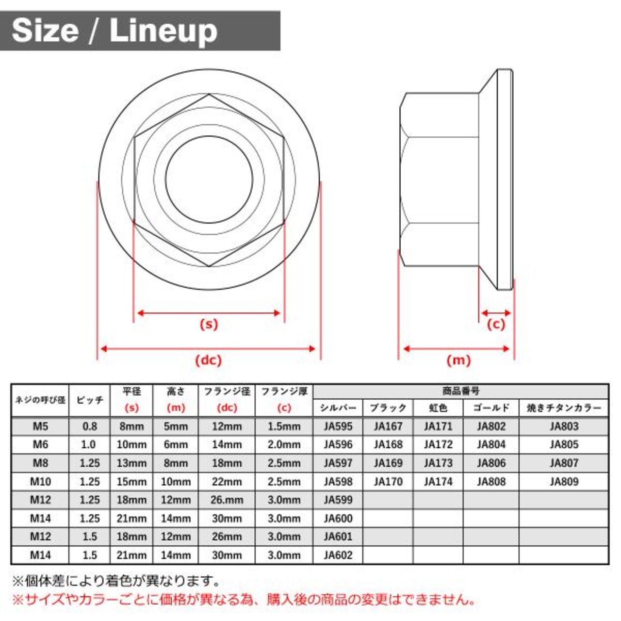 チタンナット M5 P0.8 六角ナット デザインナット フランジ付き セレート無し 焼きチタンカラー 1個 JA803