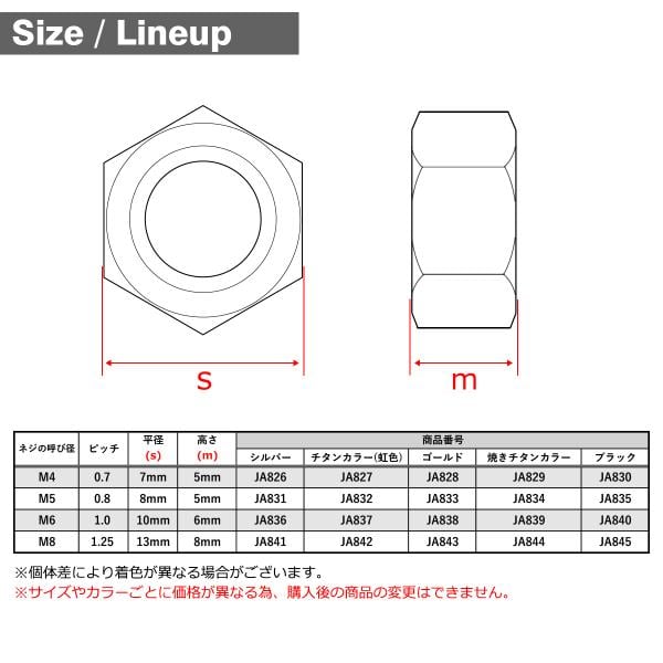 六角ナット型、ナイロンリング内蔵(サイズは画像に掲載)