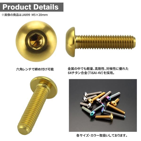 チタンボルト M5×25mm P0.8 トラスヘッド 六角穴付き ゴールドカラー 1個 JA902