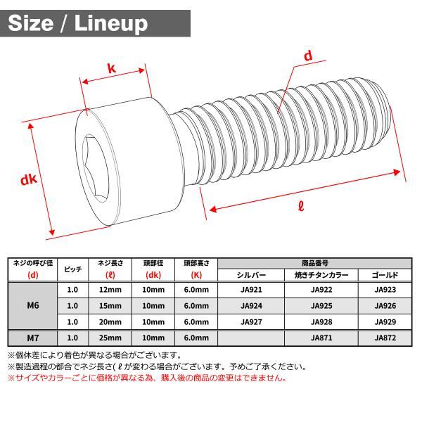 チタンボルト M6×12mm P1.0 キャップボルト スリムヘッド 六角穴付き 焼きチタンカラー 1個 JA922