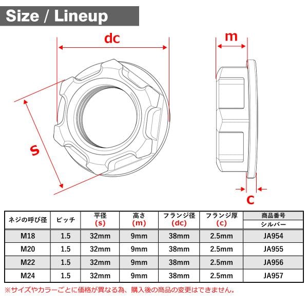 64チタンナット M22 P1.5 六角ナット アクスルナット フランジ付き シルバーカラー 1個 JA956