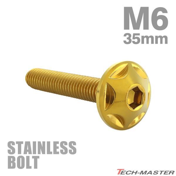 ステンレスボルト M6×35mm P1.0 ボタンボルト スターヘッド ゴールドカラー TR0028