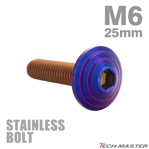 ステンレスボルト M6×25mm P1.0 ボタンボルト シェルヘッド 焼きチタンカラー TR0124